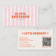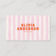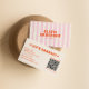 Tarjeta De Visita Retro Pink Boho Groovy Pinstripes Girly QR Code