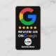 Una simple tarjeta de personalizado negra para ser una oportunidad única e inteligente para que pidas a tus clientes que dejen una revisión de cinco estrellas para tu tienda en Google. Añade tus detalles, todo estilo de texto, colores, Impulsar tu presencia en Google Online Mejora tu reputación online y visibilidad en Google. Más revisiones significan más confianza y credibilidad para su negocio.