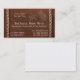Cree una fuerte impresión occidental con esta tarjeta de presentación con aspecto de cuero, que presenta un diseño rústico de rodeo y vaquero. La rica apariencia texturizada imita el cuero trabajado para un auténtico toque occidental, aunque sigue siendo un diseño gráfico impreso, no cuero real.