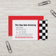 Tarjeta de visita para la recuperación automotriz/auto del motor del coche y los profesionales de mantenimiento del coche. Diseño a cuadros de la bandera del motor que compite con en blanco y negro rojos. Personalice con sus propios detalles del negocio y los detalles del negocio. Diseñado por Sarah Trett.
