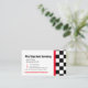 Tarjeta de visita para la recuperación automotriz/auto del motor del coche y los profesionales de mantenimiento del coche. Diseño a cuadros de la bandera del motor que compite con en blanco y negro rojos. Personalice con sus propios detalles del negocio y los detalles del negocio. Diseñado por Sarah Trett.