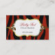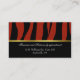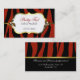 Tarjeta de visita elegante del estampado de animales, con un estampado de zebra coloreado rojo y negro como fondo, en el frente y la parte posterior de la tarjeta. Una raya dorada decorativa corre a través del centro, en el frente y la parte trasera. Un oro que mira área de texto enmarcada tiene gráficos bonitos de las hojas del oro, por ambas partes, y del texto adaptable negro listo para personalizar para su negocio.