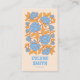Una tarjeta de visita de flores florales de color azul y amarillo retro vintage. Como veis, presenta un patrón de florido groovy hecho a mano de margaritas de flores abstractas. Tiene nostálgicas vibraciones de los años 70 y colores y fuentes groovy. Y se puede personalizar simple y fácilmente el nombre y la profesión y el código QR. Pulsando sobre el botón de personalización. Así que agárralo y hazlo tuyo para que tu negocio sea pegajoso y muy diferente.