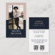 La parte frontal de la tarjeta de presentación presenta un diseño fotográfico con un fondo de dos tonos entre rosa y azul marino oscuro con el nombre de la empresa. La parte posterior presenta un diseño minimalista de dos tonos con azul marino oscuro en la mitad superior y blanco en la parte inferior con la información de contacto y el nombre de la empresa en un diseño limpio y minimalista. Personalice con dos códigos QR propios. Puede personalizar el tamaño del texto, la fuente, los colores y el color de fondo según sus preferencias personales.