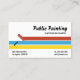 Diseño de tarjeta de visita para pintores que muestran un rodillo de pintura y tres líneas de colores diferentes. El estilo de fuente, el color y el tamaño pueden personalizarse. Se puede cargar un logotipo y añadirlo al diseño. La tarjeta de visita es ideal para pintores, prácticos o especialistas en renovación.
