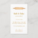 Tarjeta De Visita Rolling Pin Bakery Chef Caterer Gold Script