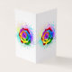 Rosa grande y floreciente con pétalos de arco iris sobre fondo blanco, pintado con salpicaduras de pintura colorida y brillante. 3.ª