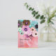 Elegantes rosas aqua azul blanco y anemones azul púrpura sobre fondo rosa caliente . Este diseño clásico y único para bodas ,tarjetas de lugar, save-the-date ,tarjetas de agradecimiento,despedidas de soltera, cumpleaños sweet 16, fiestas, despedidas de soltero, o casi cualquier evento que desees!