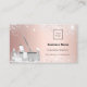Una tarjeta de visita elegante y glamurosa sobre un fondo de color dorado falso rosa de aspecto metálico decorado con polvo falso purpurina plateado en el frente y equipo de limpieza. Personalice y agregue su logotipo empresarial, nombre, información de contacto de texto y su propio código QR a su dirección de sitio web.