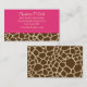 rosa del estampado de girafa; tarjeta de visita diseñada