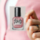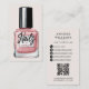Tarjeta de negocios moderna, elegante y de moda de Técnico de uñas. El diseño presenta una botella de esmalte de uñas con esmalte de uñas de oro rosa sobre un fondo brillante, el guión de tipografía ''uñas'' y el nombre / nombre del salón en la parte delantera. Personalice más con sus datos de contacto, medios sociales y código qr en la parte trasera.