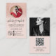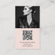Moderno gradiente negro rosa purpurina de oro oscuro en la tarjeta de visita del fotógrafo fotógrafo de código qr con foto rosa pastel con el logotipo de código qr. Añade 2 fotos, tu logo, medios sociales y código qr para mostrar tu lista de precios, cita, portafolio y más!. Simple con máscara de foto circular y una tipografía moderna y elegante de pincel de escritura,