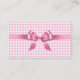 Tarjeta de visita linda de la guinga, con los rosas y las hojas rosados del verde con del arco la parte posterior rosada encendido. Añada su nombre comercial, dirección, número de teléfono y horas sobre esta tarjeta de visita bonita. Lindo para un florista, una tienda del edredón, un negocio de costura, una tienda de belleza o cualquier negocio femenino.