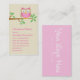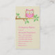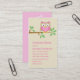 Broncee las tarjetas de visita con un búho rosado encaramado sobre una rama frondosa. El lado trasero de esta tarjeta es un rosa de coordinación. Este búho dulce quiere ser su mascota. Perfectamente lindo para un negocio que se especializa en los productos de los niños o pues una tarjeta del contacto de la "mamá", este diseño saldrá de una primera impresión dulce.
