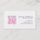 Simple y elegante, esta tarjeta de visita coloreada moderna elegante roja del código del qr dejará a sus clientes conocerle es seria. Substituya el código del qr de la muestra por sus el propio, usted puede crear el suyo gratis en http://www.unitaglive.com/qrcode usando el código #ec86b5 del maleficio del color