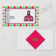 Una tarjeta de visita del profesor que ofrece el logotipo de la escuela rosada rodeada por una frontera del argyle de las rosas fuertes y de la verde lima. Modifique el frente para requisitos particulares con su información. Modifique la parte posterior para requisitos particulares con sus iniciales.