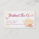 En esta tarjeta de visita, tetera, rosas y platos de tetera de colores suaves para la comida de fiestas de té o de té, personalizados con su elección de tipos de letra y combinación de colores.