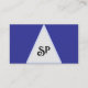 This elegant card is refined and polished, displaying the individual’s initials in black stylish font, paired with subtle gray accents within a trendy geometric pattern for a perfect balance of contrast and elegance. The combination of royal blue, white and gray creates a contemporary, high end feel, ensuring that this business card stands out while maintaining a sleek, corporate aesthetic look, exuding professionalism, trustworthiness and sophistication. The back of the card offers a clean, modern design with a customizable space for a photo or logo, along with the name address and phone number. The strong script allows shows confidence along with warmth for a personalized touch that makes a lasting impression.