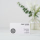 Una plantilla de tarjetas de visita clara, elegante y atractiva, con una flor o símbolo de estrella de estilo Art Déco simple pero que atrae la atención. Información principal de la empresa en la parte delantera, con nombre y contacto personal en la parte posterior, en un fondo gris con una versión blanca del símbolo.