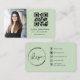 Promote your brand with this sage green QR code photo business card. The soft, modern color creates a calm and professional look, while the photo layout allows you to showcase your work or personal branding. An integrated QR code makes it easy for clients to access websites, booking links, or social media. Designed with clean spacing and modern styling, this card is ideal for professionals seeking a stylish, print-ready business card with digital convenience.