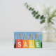 Four colorful shopping bags spelling 'SALE' dangle from a clothesline, beautifully contrasting with the natural scenery behind them.