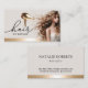 Tarjetas de visita de Chica de belleza y secador de pelo de oro.