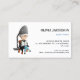 Tarjeta de visita simple y linda con un ilustracion de un cliente en la peluquería o salón de belleza. Ilustrado y diseñado por Patricia Álvarez.