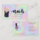 Tarjeta De Visita Salón de belleza Nail Tech Pastel Neon Holographic