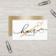 Hair Stylist Gold Scisor Elegant Script Hair Salon Tarjetas de Negocios.