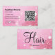 Cree una tarjeta de visita rosa con nuestras plantillas de tarjetas de visita Hair Stylist de personalizable. Perfecto para esteticistas y peluqueros, estas tarjetas incluyen su información comercial y código QR. Disponible en tamaño estándar 3.5 x 2.0 con esquinas normales y redondeadas, estos diseños sencillos y elegantes son ideales para cualquier salón de belleza o peluquería.