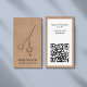 Tarjeta De Visita Salón de tijeras de código QR blanco Faux Kraft