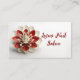 Una hermosa representación en 3D en rojo, blanco y dorado de una flor de loto adorna esta tarjeta de visita que podría ser utilizada en su salón de uñas o clínica de belleza.