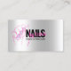 Tarjeta De Visita Salon de uñas platino, irlandés + Purpurina rosado