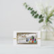 Estilista de uñas o salón de Relieve metalizado de oro falso y sobrecubrimiento rectangular de color crudo como telón de fondo para las uñas de color acuarela. Simplemente personaliza de frente y de vuelta con los detalles de su negocio.