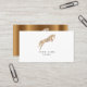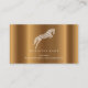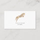 Plantilla de tarjeta de visita ideal para el cuidado de caballos, entrenamiento de caballos, servicios veterinarios. Este elegante diseño muestra el garabato saltando caballo en color dorado en la parte delantera, con nombre de negocio y tagline.En la parte trasera está su nombre e información de contacto.