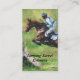 Una plantilla de la tarjeta de visita para los instructores que montan, los instructores o los distribuidores autorizados con una pintura al óleo efectúan el caballo y el jinete que pasa un campo a través salta en un acontecimiento.