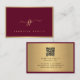 Personalizado Moderno Diseño Profesional Elegante Caligrafía Script Monograma QR Plantilla De Código Euro / Europa / Tamaño Europeo Semi-Gloss Bordeaux De Lujo Y Tarjetas De Negocios De Oro. Ideal para Agentes Inmobiliarios, Contables, Realtors, Brokers, Abogados, Médicos, Profesionales Corporativos, Estilistas, Arquitectos, Ingenieros, Directores, Gerentes, Consultores, Diseñadores, Maestros, Músicos, todas las profesiones.
