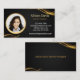 Tarjeta de presentación de seguridad de la compañía de fotografía de empleado negro y dorado (