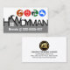 La portada presenta un anuncio creativo "HANDYMAN" donde la letra A está hecha de un martillo para formar un techo. Justo encima de esto hay una serie de herramientas de mano coloridas que pueden representar algunos de los servicios que usted podría ofrecer, por ejemplo, la cinta de medida de perforación puede representar reparación de carpintería en el hogar, el enchufe de alimentación para trabajos eléctricos, pinceles para remodelación de pintura y el grifo para servicios de fontanería. La descripción se deja a su propio entendimiento. En la base de la tarjeta está tu prestigioso nombre y datos de contacto. Al dorso, en una cubierta blanca, se encuentra en la parte superior un logotipo dorado para el paisaje de la casa. A esto le sigue el nombre de la empresa y sus datos de contacto. Un gran diseño para el hombre de mano. #handyman #Construction #constructor #contratista #remodelado #contratista de edificios #homerepair #contratista general #handymantools #homerepaircontratista #zazzlemade