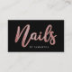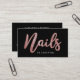 Elegantes y sencillas tarjetas de visita para su negocio de las uñas, presenta un guión de Relieve metalizado rosa dorado, en un fondo negro con su nombre en color blanco . Añade tus datos al dorso de la tarjeta. El fondo en la parte posterior es negro y el texto está en escritura blanca moderna.