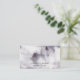 This design offers a serene and ethereal style business card for a massage therapist, with soft muted watercolor blue violet hues, and trees in a misty forest with clouds, and birds flying. Available in print, as a digital download, or both.