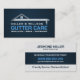Tarjeta de presentación para pequeñas empresas especializadas en la instalación, reparación, limpieza y mantenimiento de canalones. Esta plantilla presenta un diseño limpio y profesional con texto en negrita y elementos de diseño llamativos.