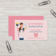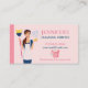 Tarjeta de presentación del servicio de limpieza de casas de doncella rosa y azul de polka