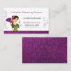 Cute Purple Purpurina Personalizado Duster Maid House Cleaning Service Card Tarjeta de presentación.