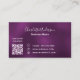 Una tarjeta de visita elegante y glamurosa sobre un fondo de gradiente morado profundo decorado con polvo falso purpurina plateado en el frente y equipo de limpieza. El color púrpura es desigual. Personaliza y agrega tu nombre, información de contacto de texto y tu propio código QR a tu dirección de sitio web.