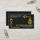 Un creativo circuito de alambre eléctrico amarillo obtiene el poder de tu prestigioso nombre y título de trabajo en la esquina superior de la cubierta gris oscura. Justo debajo hay un eslogan que dice: Cambie el título de los comentarios "llámame por una cotización gratuita" para adaptarlo a sus propias necesidades de servicio. La lámpara ilumina el nombre de la empresa y sus datos de contacto cerca de la base de la tarjeta.