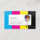 Imprimiendo tarjetas de visita con colores cian, magenta y amarillo negro. Perfecto para diseñadores gráficos y empresas de impresión digital. Fácil de personalizar con su información.