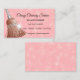 ¡Aumenta tu negocio de limpieza con una tarjeta que brilla! Esta glamorosa tarjeta de visita incluye un deslumbrante fondo purpurina rosa con una escoba de purpurina oro rosa de alta moda como el gráfico principal. El texto anuncia claramente un servicio de limpieza de clase y enumera sus opciones de servicio flexibles (Diariamente - Semanal - Mensual - Una vez).