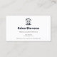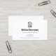 Una tarjeta profesional pero sencilla de servicios de limpieza de casas con un moderno logo de una casa de dos pisos en blanco y negro. Personalice añadiendo el nombre del cuidador o conserje autorizado y en condiciones de servidumbre.