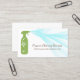 Personalice esta tarjeta de visita de servicios de limpieza de estilo moderno y fresco añadiendo el nombre del cuidador profesional o de la empresa de limpieza. Este diseño incluye una botella de spray verde con un remolino de hojas que rocían agua azul acuática en el aire. Puede darle un aspecto personalizado cambiando el color de fondo para que coincida con su negocio.